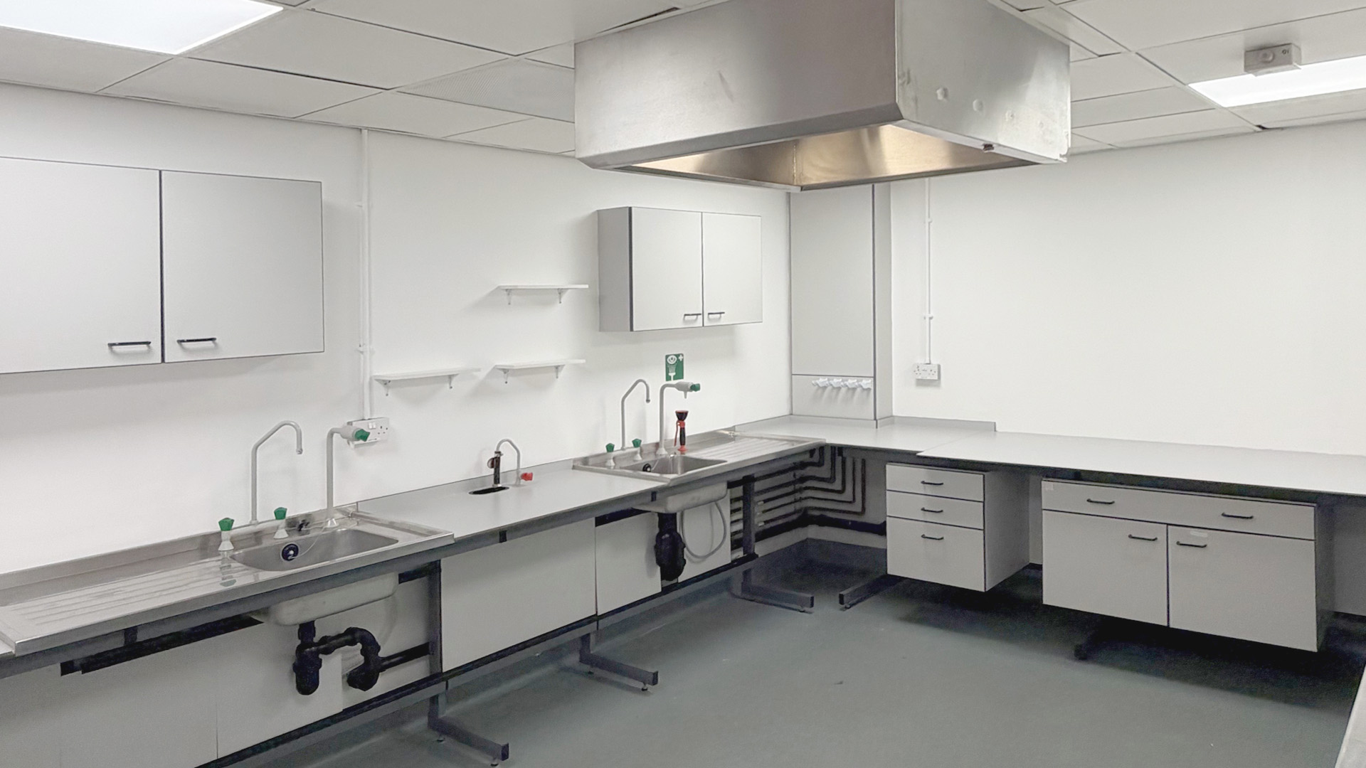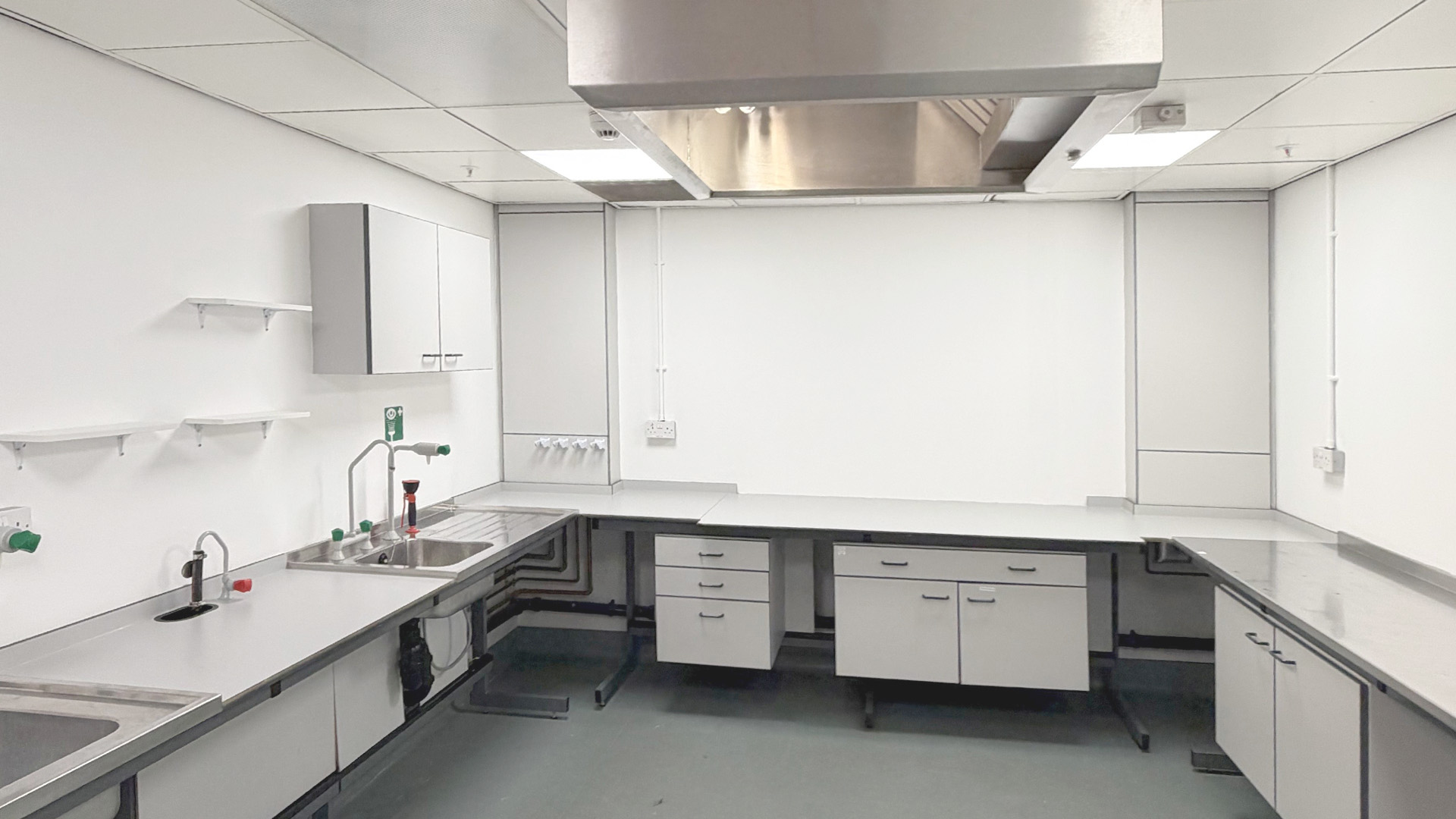 Located within MediCity Nottingham, this lab space for rent is situated on the first floor. The lab benefits from access to a shared kitchenette, led lighting, eye wash sink, and power sockets throughout the room.